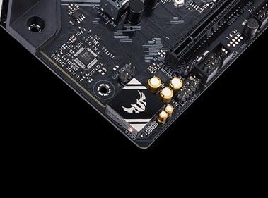 TUF B450M-PRO GAMING主板的板載聲卡可不要小看它,這是個Realtek ALC8877聲卡,音頻芯片的區域和主板別的地方有防護線隔開,避免其他信號干擾音頻芯片。邊上搭配了4顆日系電容確保聲卡輸出的聲音更加純凈,這顆聲卡也是華碩與DTS合作,給玩家提供了三種游戲音效,針對RPG、MOBA、FPS三大類游戲優化,提供逼真的多聲道環繞立體聲效果。