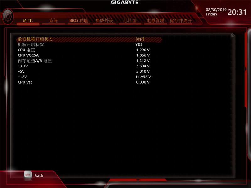 “M.I.T”界面可以對CPU、內存進行各種超頻設置,也可以設置風扇策略。