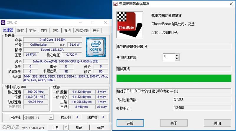 在國際象棋測試中,i3-9350K的性能倍數為50.9,每秒計算24430千步。