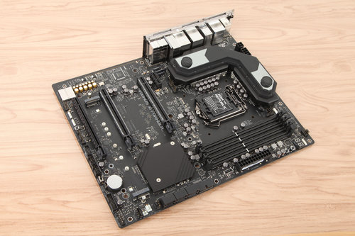 拆下SATA 3.0接口后面的PCH裝甲,我們可以看到全新的Intel Z390芯片組采用14nm工藝,向下兼容第八代酷睿處理器,有著更強的超頻性能,配合華碩最新優化的AI智能超頻,可聯動機身內部所有傳感器,為不同型號的處理器帶來不同的超頻模式,對于不鎖頻的CPU有著更強的支持,全面支持第九代酷睿處理器。
