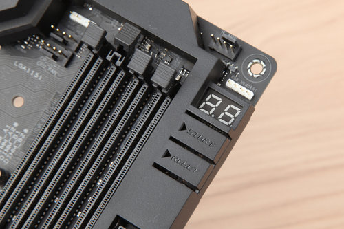 在DIMM接口的右上角,M11F主板配備有Q-LED多彩診斷燈,可通過其顯示的代碼快速判定電腦出現的問題,方便排查修復。另外被裝甲覆蓋的關機和重啟按鍵也方便裸平臺用戶的日常使用。