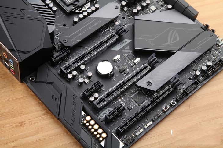 作為華碩ROG MAXIMUS XI 系列的基礎版,這款主板在PCI-E擴展規格上符合各類游戲玩家的需求,在主板依次擁有三枚PCI-E插槽,規格方面均保持了PCI-E×16長度的插槽,加裝防護盔甲的兩個加裝防護裝甲的PCI-E插槽支持×16和×8/×8帶寬模式以及一個的支持×4帶寬模式。此外華碩還為每位玩家附贈了2-Way顯卡SLI橋接器。