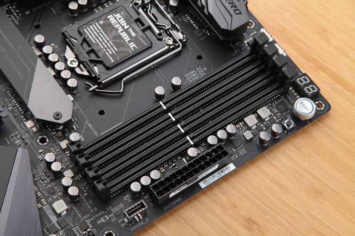 華碩ROG MAXIMUS XI HERO WiFi配備了四根DIMM內存插槽,最大支持64GB內存容量,最高支持4400MHz頻率,方便用戶組件雙通道內存。同時支持華碩最新科技成果MemOK!Ⅱ,該技術可以幫助玩家在無法開機的情況下針對內存兼容性等問題進行快速檢測,以恢復最優性能處理。