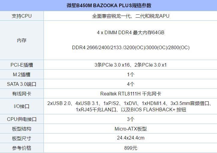 外觀方面,我們知道微星B450M BAZOOKA PLUS定位“游戲軍火庫”系列,該系列主板主要是為普通游戲玩家準(zhǔn)備的,在主板產(chǎn)品設(shè)計上偏向軍事風(fēng)格。很顯然這款主板屬于小板型,采用4+2+1供電方案,為二代銳龍?zhí)峁┳銐虻膭恿ΑE鋫淞?條DDR4內(nèi)存插槽,最高支持64GB內(nèi)存。