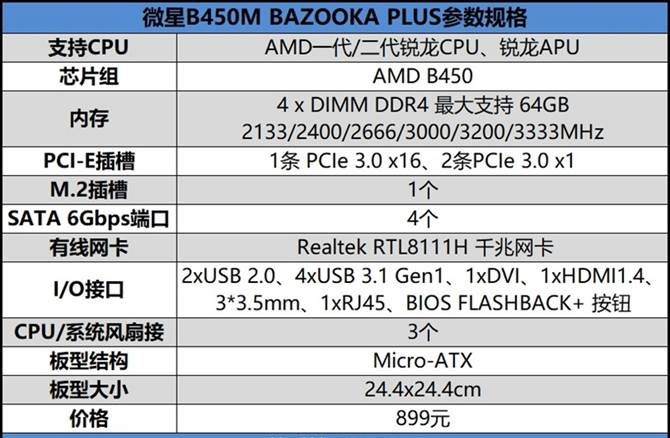 微星B450M BAZOOKA PLUS主板參數(shù)如下: