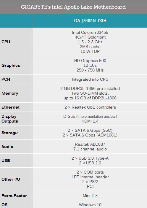 技嘉今天發布了首款基于Intel Apollo Lake超低功耗平臺的主板“GA-J3455N-D3H”,采用ITX迷你板型,提供了多個古老的IO接口,懷舊專用。
