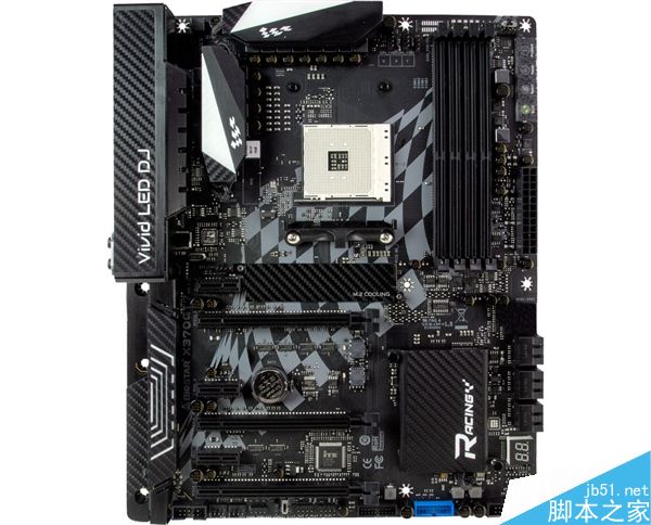 Rcing X370GT7”為旗艦型號,各項功能齊全,擁有四條DDR4-2667內存插槽(最大64GB),兩條PCI-E 3.0 x16(單路x16或雙路x8)、一條PCI-E 2.0 x16(帶寬x4、三條條PCI-E 2.0 x1擴展插槽,留個SATA 6Gbps和一個M.2 2280 32Gbps硬盤接口、Realtek RTL8118AS千兆網卡、Realtek ALC1220八聲道聲卡。