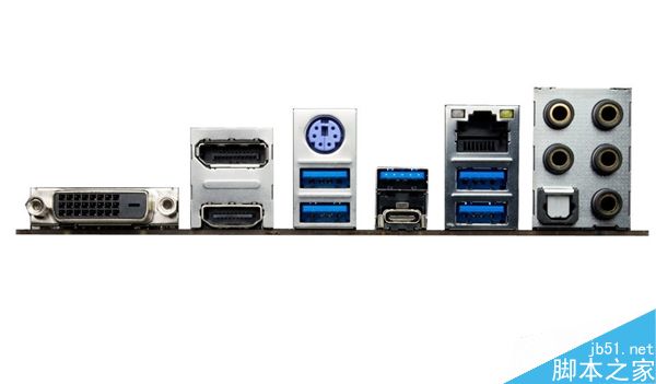 背部接口一個PS/2、一個USB 3.1 10Gbps Type-C、一個USB 3.1 10Gbps Type-B、四個USB 3.1 5Gbps、一個DisplayPort、一個HDMI、一個DVI、S/PDIF。