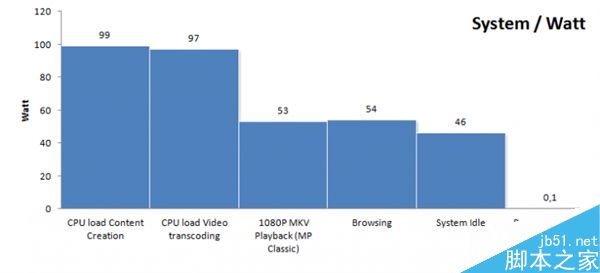 閑置45W,1080P MKV回放 53W,轉碼97W。