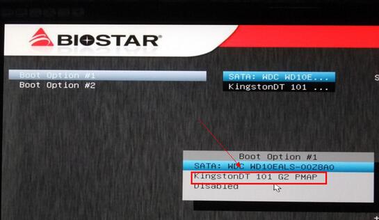最為簡單的方法就是:電腦開機,映泰logo出現按“F9鍵”,選擇U盤設備即可啟動U盤。也可以進入BIOS界面設置,教程如下: