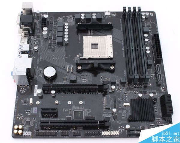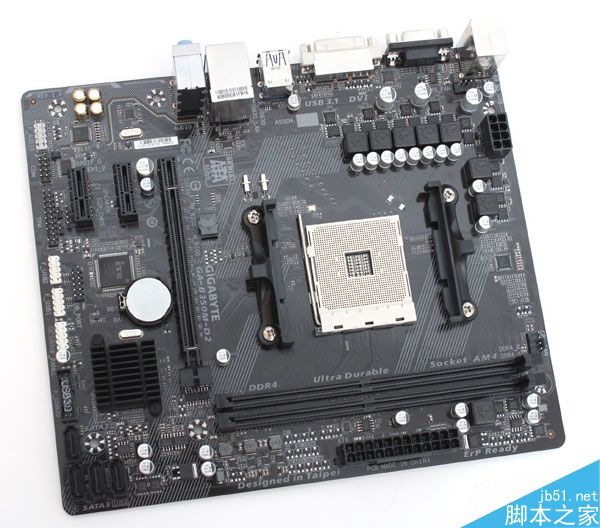 另一塊板就更入門了,是技嘉面向OEM伙伴做的,型號GA-B350M-D2,內存僅雙插槽,7相供電,8Pin CPU電源接口,4個SATA3 6Gbps接口,只有1條PCIe 3.0 x16插槽。