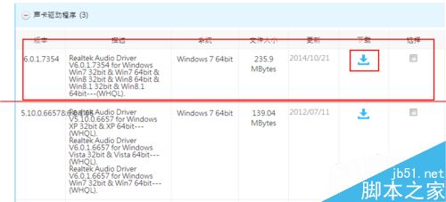 4、點擊聲卡驅(qū)動程序,選擇最新版本也就是最前面的,然后下載,下載完后安裝,它會提示重啟,選擇是