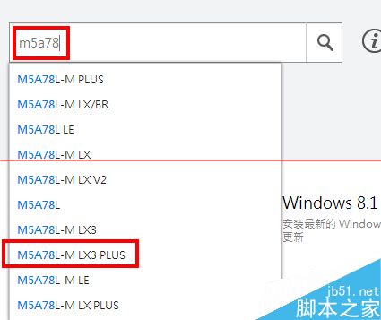 2、輸入m5a78然后選擇M5A78L-M LX3 PLUS,點擊旁邊的搜索圖標(biāo)