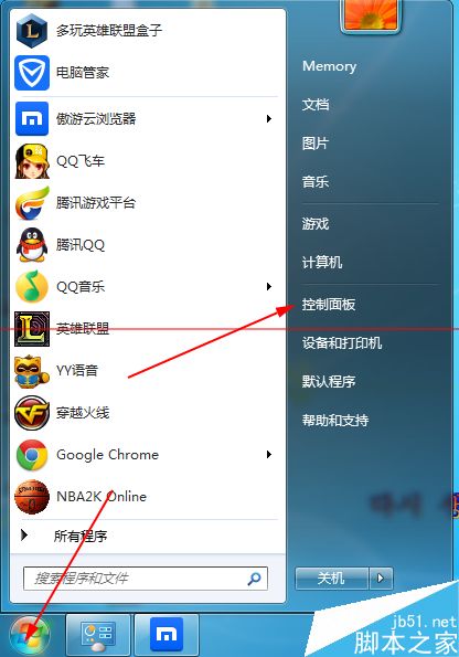 5、點擊桌面左下角的開始菜單-控制面板