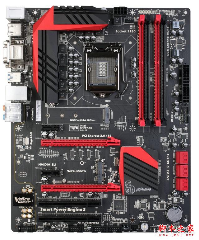 該主板采用6相高品質全固態電容供電設計,為游戲平臺帶來了絕佳的穩定性。同時,主板采用ATX大板型PCB制造,進一步增強了平臺的散熱能力。主板基于IntelB85芯片組設計,提供了LGA 1150處理器接口,完美支持Intel第四代智能酷睿處理器。