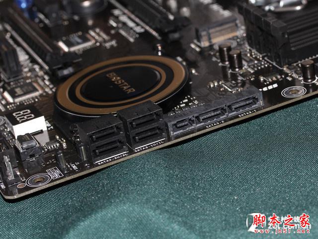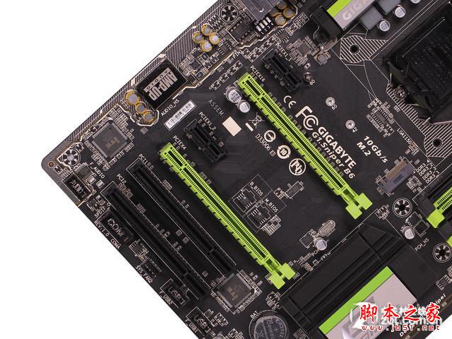 主板的PCI擴展部分,帶有3條PCI-E x16高速插槽,3條PCI-E x1插槽,支持雙路SLI及三路CrossFireX,能夠滿足不同玩家的顯卡擴展需求。磁盤接口同樣非常豐富,包括6個SATA 3.0接口,1組SATA Express接口,1個高速M.2接口。其中M.2接口和SATA Express接口可以提供10Gb/s的理論帶寬速度,進而發揮出SSD更快的讀寫速度潛力。
