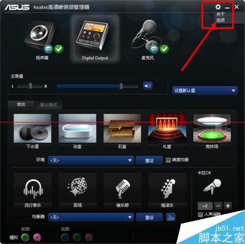 2、打開“Realtek高清晰音頻管理器”后,點擊右上角設置圖標,選擇“選項”