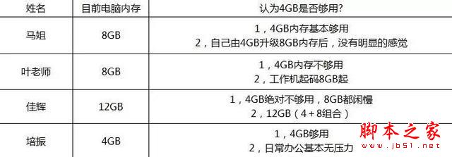 最后,筆者還對幾位同事進行了小調查,看看他們對“電腦上4GB內存是否夠用”怎么看吧。