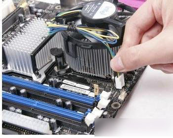 此圖為CPU散熱風扇接口,其四個針腳分別是接地、速度檢測、電源、調速。