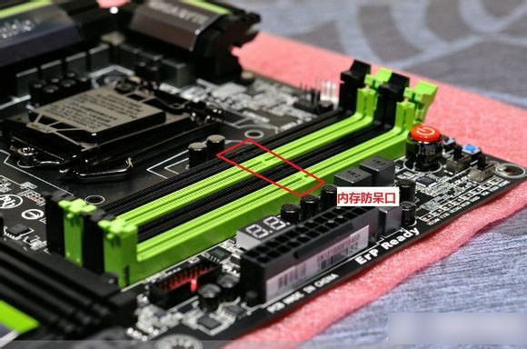 DDR SDRAM插槽,如圖內存插槽中間有一個防呆口,這個防呆口具有保證內存安裝方向正確和保證安裝正確類型內存兩個作用,所以在安裝內存時絕對不可以使用蠻力。