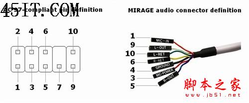 看起來線有點多,但是同樣非常好記,大家不妨按照筆者記得方法。首先記住前三根,第一根是麥克輸入,第二根接地,第三根是麥克電壓,然后第5Pin和第6Pin插右聲道,第9Pin和第10Pin插左聲道。從上往下數就是,Mic in、Mic電壓、右聲道、左聲道,再外加一個接地。這么記是不是很簡單?