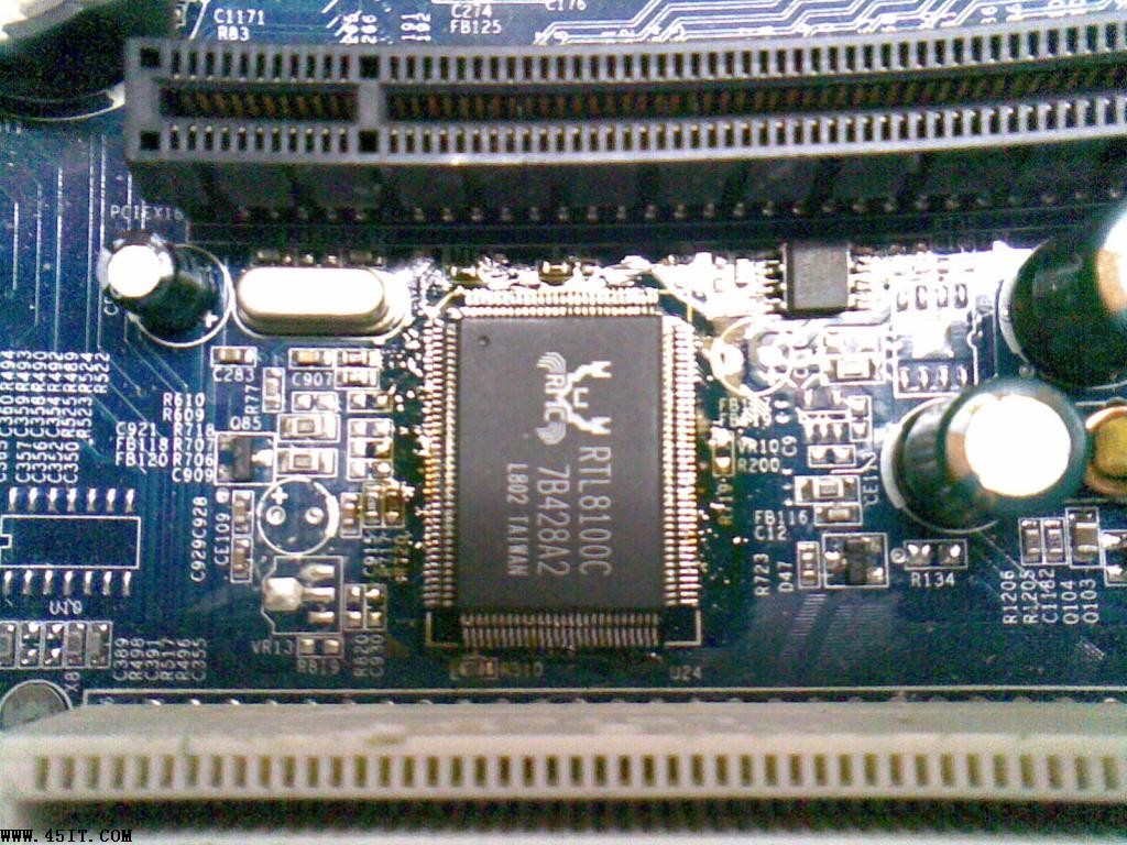 從廢板上拆個RTL8100C和93C換上,復位燈又長亮。摸芯片也不發熱,93C無非是存一些網卡的MAC之類的東西估計是通用的,無復位應該與它無 關,拆下RTL8100C上電又可以亮機了,再搞一個上去,這回可以走碼了,跑到45就停了喇叭狂叫,無意中看到COMS電池還靜靜地躺在棹子上,于是把 它裝上去,再上電OK,此板修復。- b3 c* /9 G% Z. j5 c
