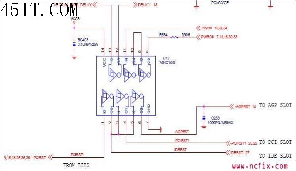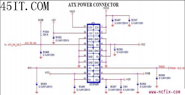 三、PWOK由POWER CONNECTOR直接發送出來其中間有接到W83301R,74HC14(RESET轉換IC)