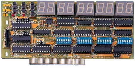 Debug卡的種類比較多,比較專業的Debug卡(圖三),也具備比較復雜的功能,如Dual port(雙面接口,即上下兩面接口分別為ISA和PCI)、自動重啟、外接顯示LED、Step by Step trace(步步跟蹤)等,不過售價也比較高。市場上面向普通用戶的Debug卡,功能相對較少,售價較低,使用也比較方便。下面以市場上常見的Debug 2000卡為例,介紹一下Debug卡的原理、安裝、使用及維修方法。