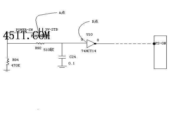 這種情況下致使U10(74HCT14)邏輯門不能打開,從而引起不上電。