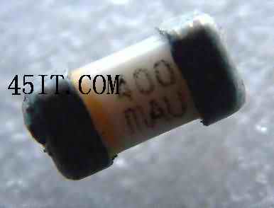 這類保險電阻的外形類似貼片電解電容,不過其顏色為白色,其上一般也有字母標注承載電流大小,如:400mAU,表示其通過的最大電流為400MA。