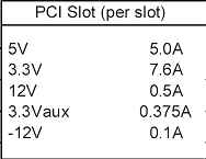 PCI供電:我們平常很少關注的-12V在PCI上面終于可以看到了,PCI供電包括+5V/5.0A,+3.3V/7.6A,+12V/0.5A,+3.3Vaux/0.375A,-12V/0.1A。當然,這個值是理論最大值,除了PCI顯卡、工業用視頻卡,很少有PCI設備能達到這么高的功耗,比如,PCI聲卡、PCI網卡功耗只有4-5W。