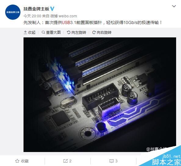 昨天晚上,技嘉金牌主板官方微博發出了“先發制人:首次提供USB3.1前置面板插針,輕松獲得10Gb/s的極速傳輸”這句話,并配上一張疑似新款主板的圖片。