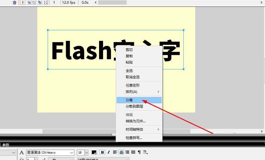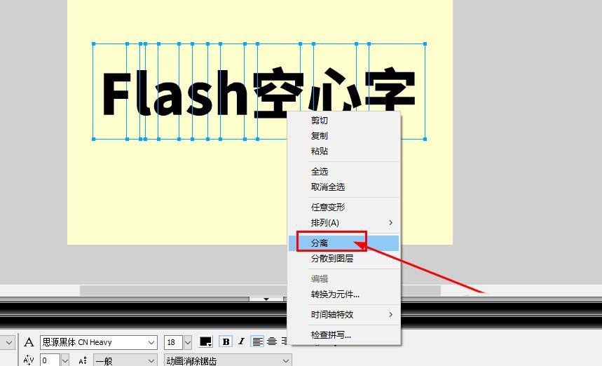 4、選擇文本,右鍵選擇分離,或使用快捷鍵ctrl+b,操作兩次
