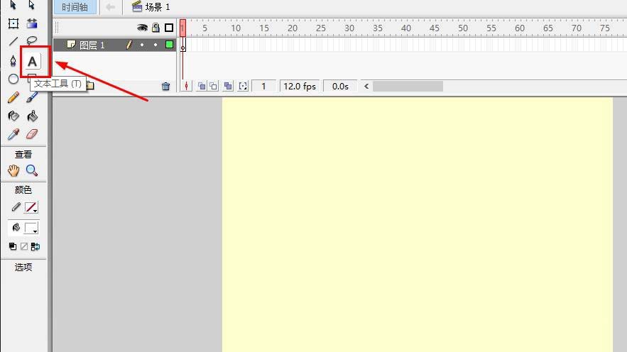 2、找到文本工具,在Flash8中,文本工具按鈕是A字樣。