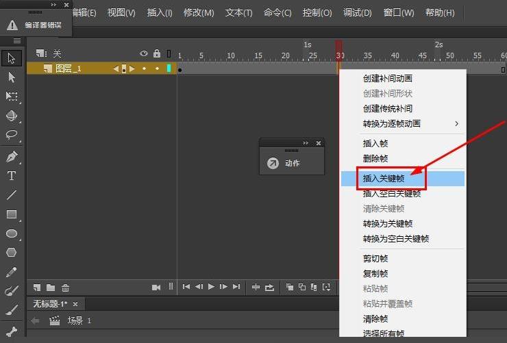 5、在第30幀插入關鍵幀,使用鼠標右鍵點擊選擇插入關鍵幀