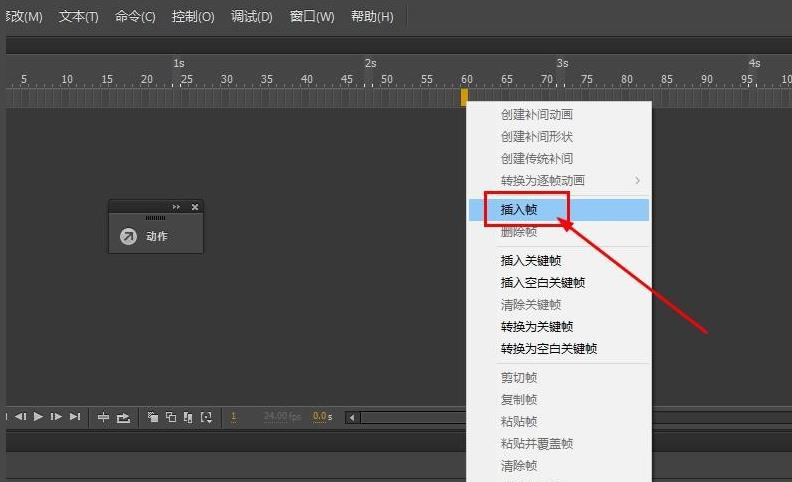 4、在第60幀插入幀,延長時間軸
