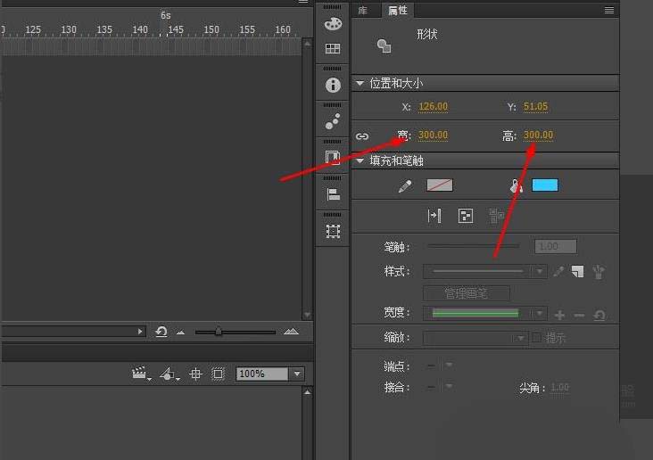1、打開Animate軟件,新建一個AS3文檔,在舞臺上繪制一個正方形,高度和寬度為300