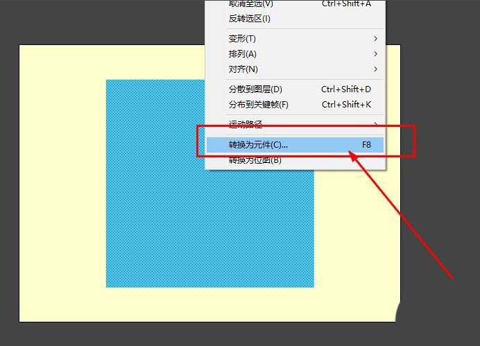 2、選擇正方形,鼠標右鍵選擇為元件,或使用快捷鍵f8