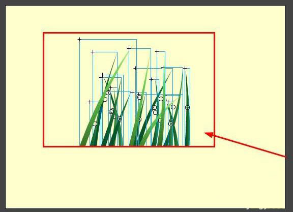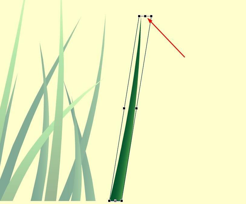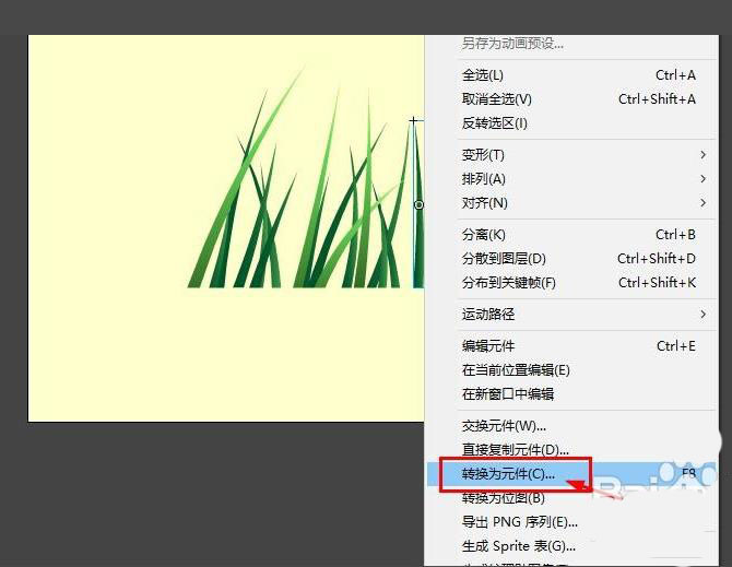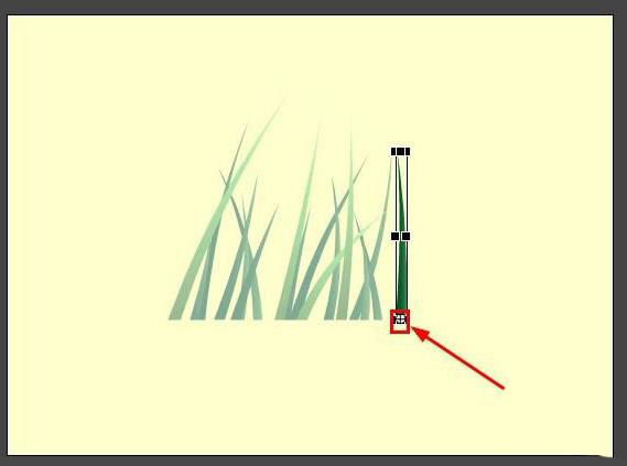 3、轉換為圖形元件后,雙擊進入編輯,用任意變形工具選擇草葉后調整變形點到下方