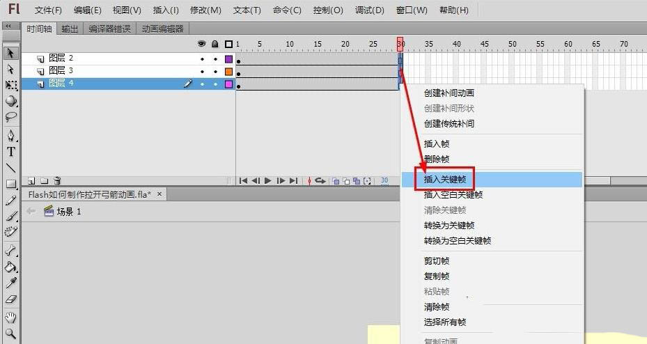 8、在第30幀對箭和弓調整形狀及位置如圖所示