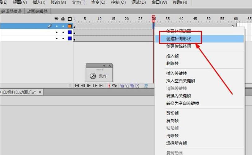8、在中間軸右鍵選擇創建補間形狀動畫