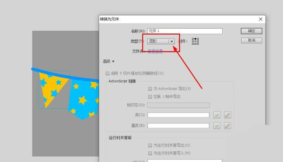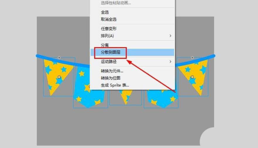 4、依次選擇彩旗部分,然后使用鼠標(biāo)右鍵選擇轉(zhuǎn)換為元件