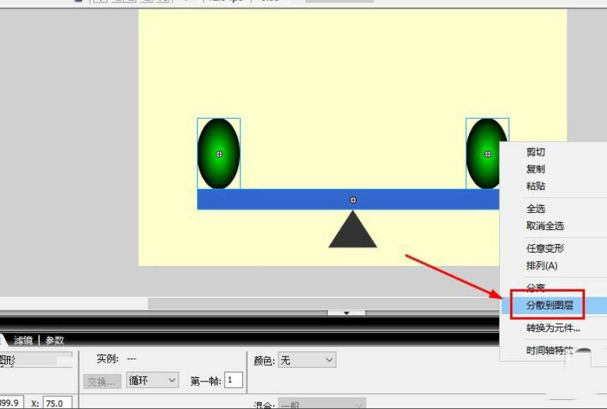 4、選擇三個(gè)元件,右鍵選擇分散到圖層