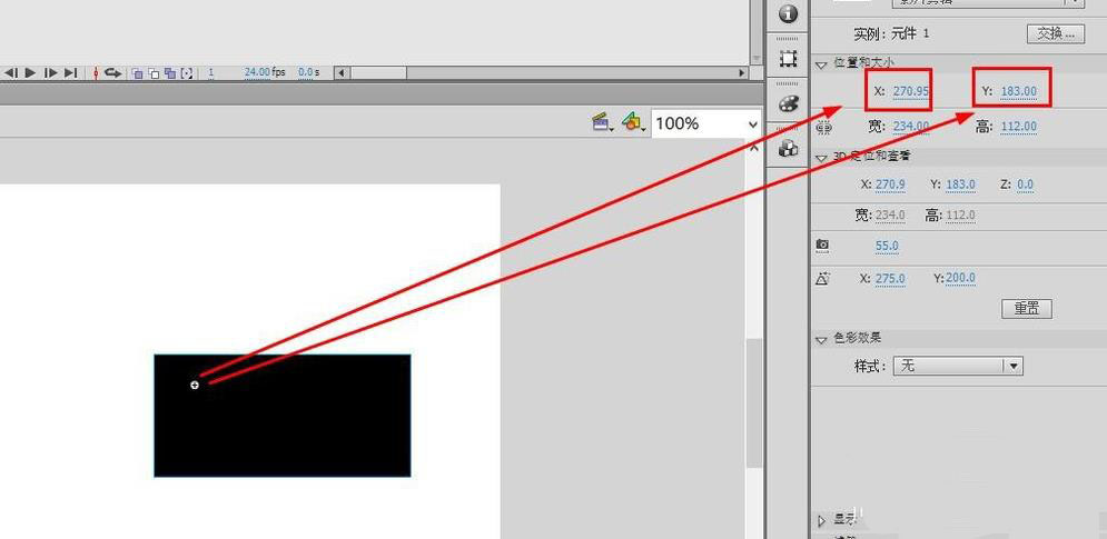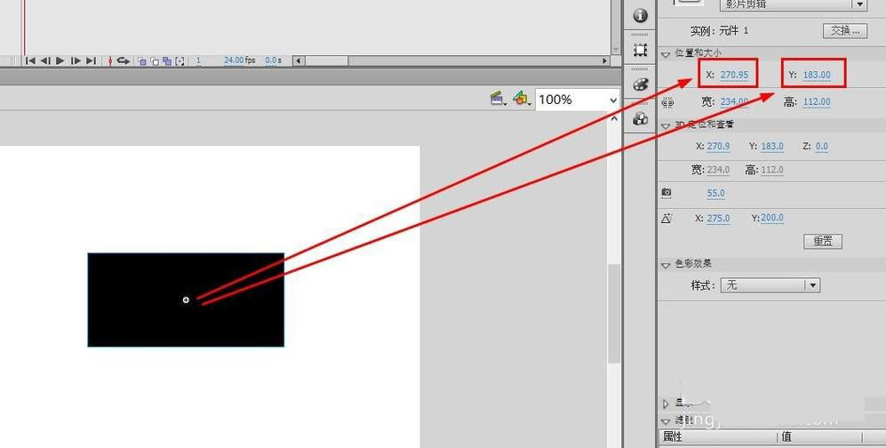 8、注冊點是對應坐標的,改變素材相對中心點的位置,元件坐標不會發生變化,如圖所示,兩個元件的位置視覺上不同,但是因為注冊點也不同,數值上坐標是一樣的。