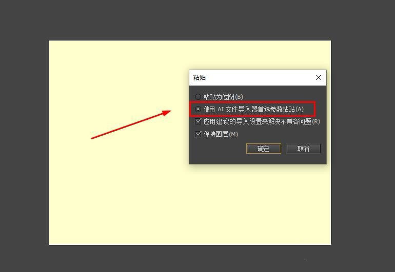 7、選擇使用AI文件導入器首先參數粘貼,點擊確定后,矢量的素材就會出現在舞臺上。