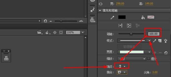 9、選擇曲線,在屬性面板設置線粗為100,端點選擇無