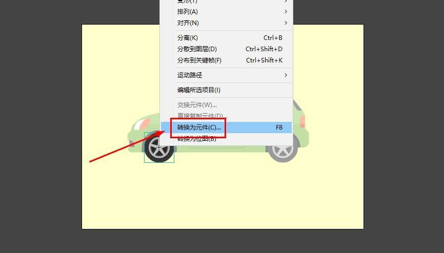 3、選擇汽車的前輪,右鍵選擇轉換元件或使用快捷鍵f8