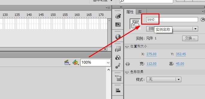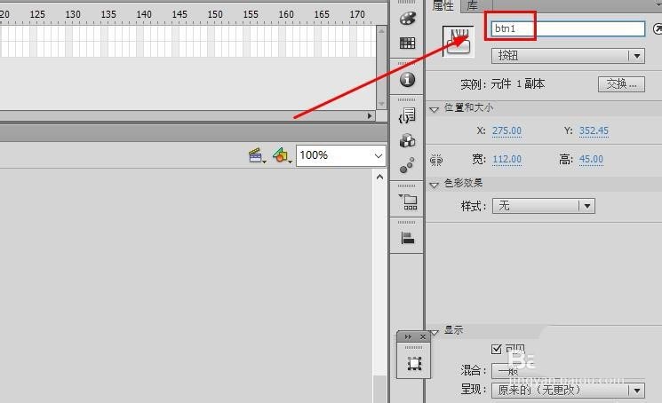 10、設置按鈕的實例名為btn1,這里需要注意的是即使是不同的場景,也不要使用相同的實例名