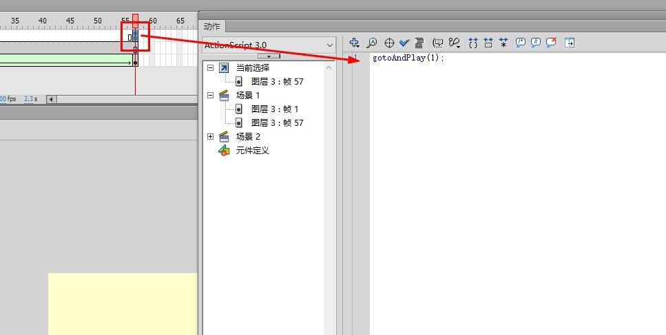 12、在有些版本中,場景之間的切換是自動的,需要在最后一幀加代碼限制自動跳轉。兩個場景都要添加代碼。