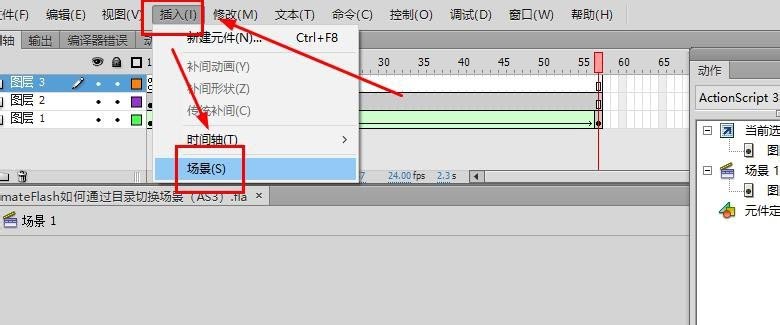7、這時如果操作因為還沒創建場景2,所以會報錯,現在添加場景2,依次選擇菜單--插入--場景,即可創建場景2